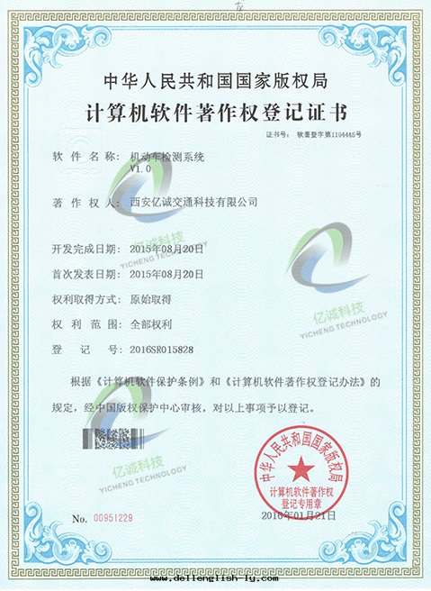 我(wǒ)獲機(jī)動(dòng)車檢測系(xì)統著作(zuò)權